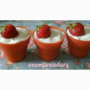 I made this for dessert on sunday after our delicious pork chops with apple sauce. So simple yet so delicious! NO THEY ARE NOT POT PLANTS! They are silicone molds for deserts like this. You can bake some cupcakes in them and decorate the top as a flower! How cute would that be? So I made a mix for 3 pots exactly. 3 tablespoon of each of the following: greek yoghurt, pb2 (powder peanut butter) you can use normal peanut butter but pb2 has 85% less fat, almond ground or almonf flour, and dark chocolate chips (I cut a normal tablet into little pieces) then mix well check out the consistency you desire, if you want more cake alike texture add more almond ground. Then I topped with a bit more greek yoghurt and a strawberry place in the fridge to set for at least 30 min before serving! Serve and enjoy! To buy pb2 click here: http://rcm-eu.amazon-adsystem.com/e/cm?t=momfitnessdia-21&o=2&p=8&l=as1&asins=B00CIURI1E&ref=tf_til&fc1=000000&IS2=1&lt1=_blank&m=amazon&lc1=0000FF&bc1=000000&bg1=FFFFFF&f=ifr