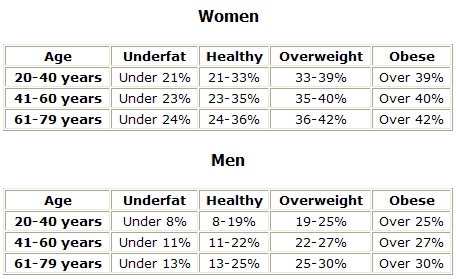 Here is a little guide of how your body fat should be more or less according to your age: (remember everyone is different)
