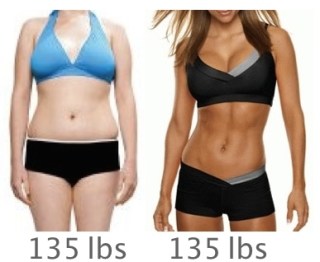 The truth is that same amount of fat compared with muscle is amazingly different as in picture below we can see 5 lbs. of fat against 5 lbs. of muscle and as you can see fat occupies much more space than muscle. That is why I always tell you guys not to eat less, eat BETTER! And also building muscle will help you burn more fat and look leaner even if you weigh the same!