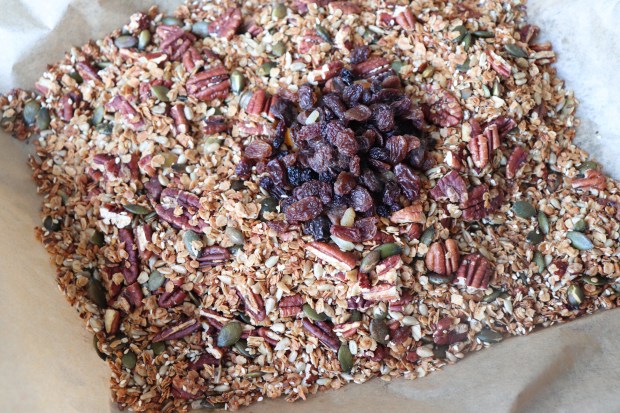 9. Once they are out of the oven mix in the raisins and the cranberries