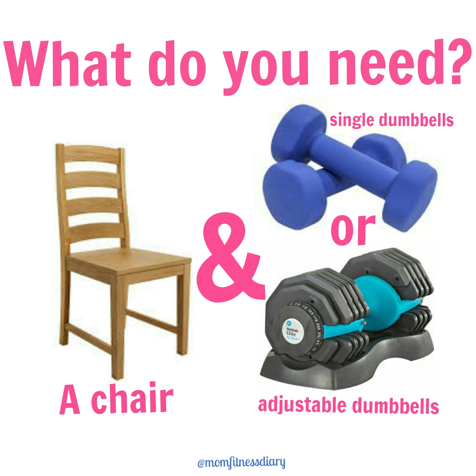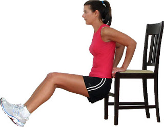 With the help of a chair dip up and down! is that simple and amazing how a simple chair can help us get some toning in the tricep area.