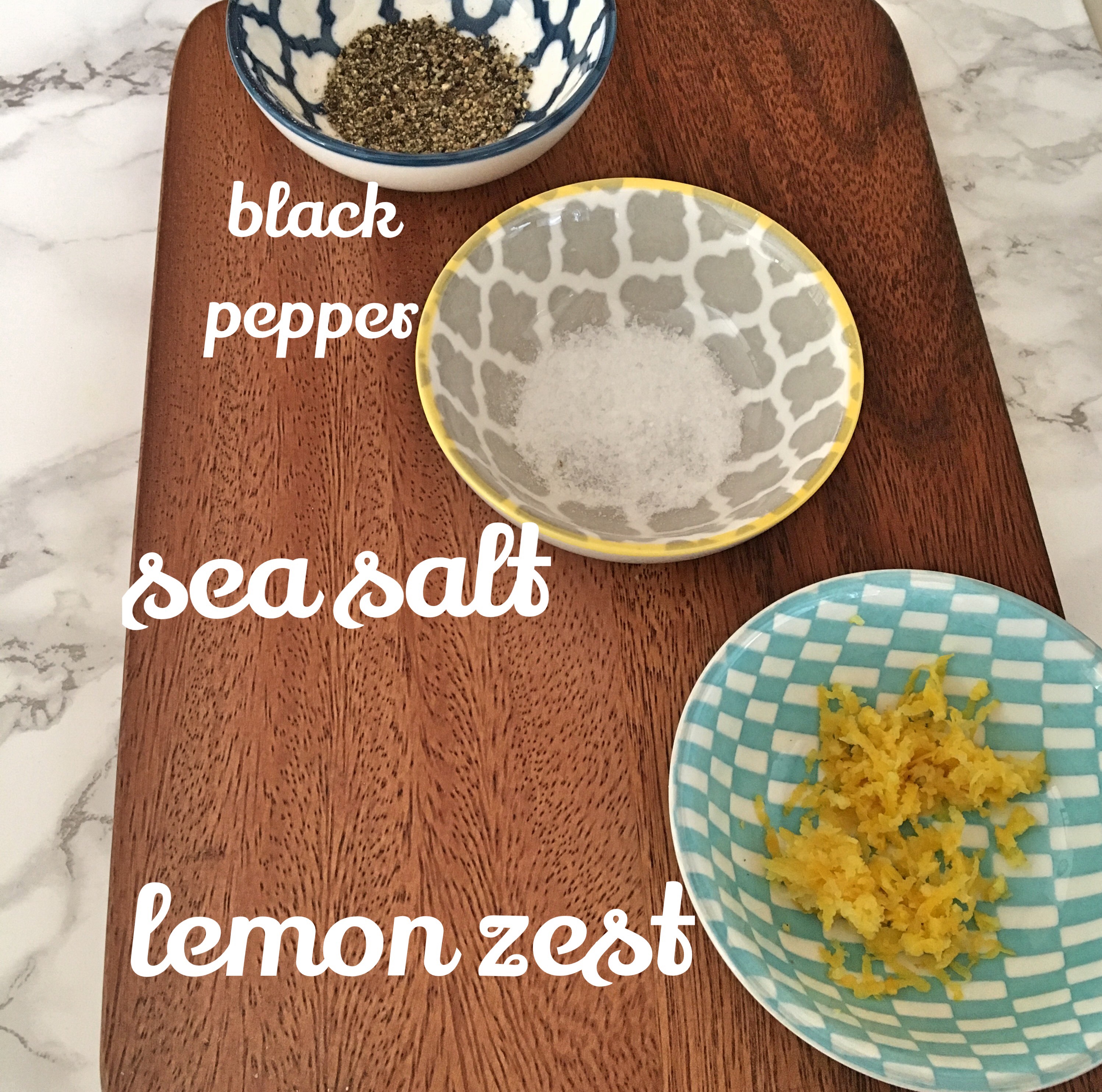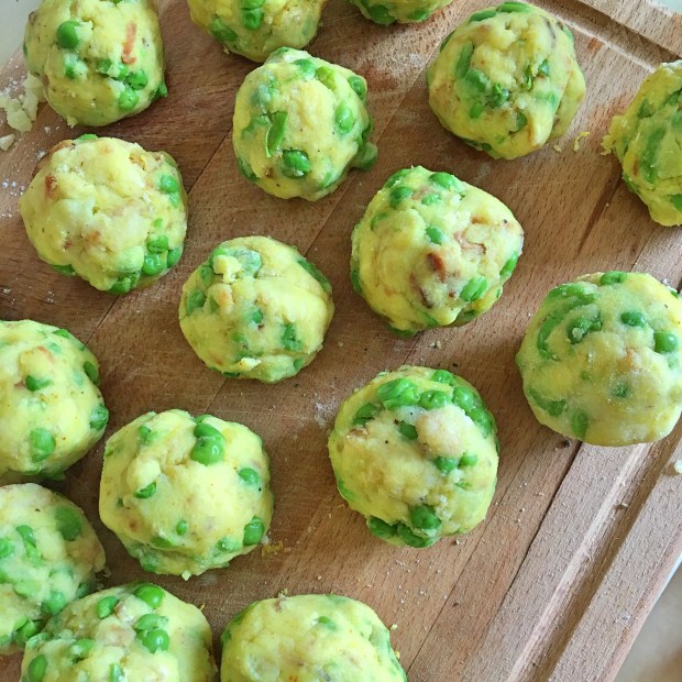 3. Mash the potatoes, peas, flour, turmeric, lemon zest, sea salt and pepper