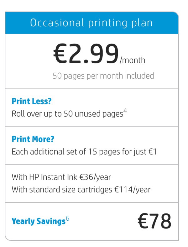 I went for the 4.99 a month and I couldn’t believe when my first delivery arrived as I had no clue that my ink was running low!