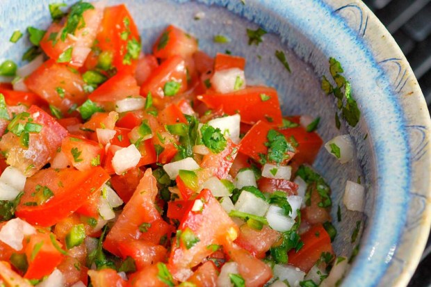 To make this simply chop all ingredients very finely and mix with the lime, oil and vinegar. Season with sea salt!