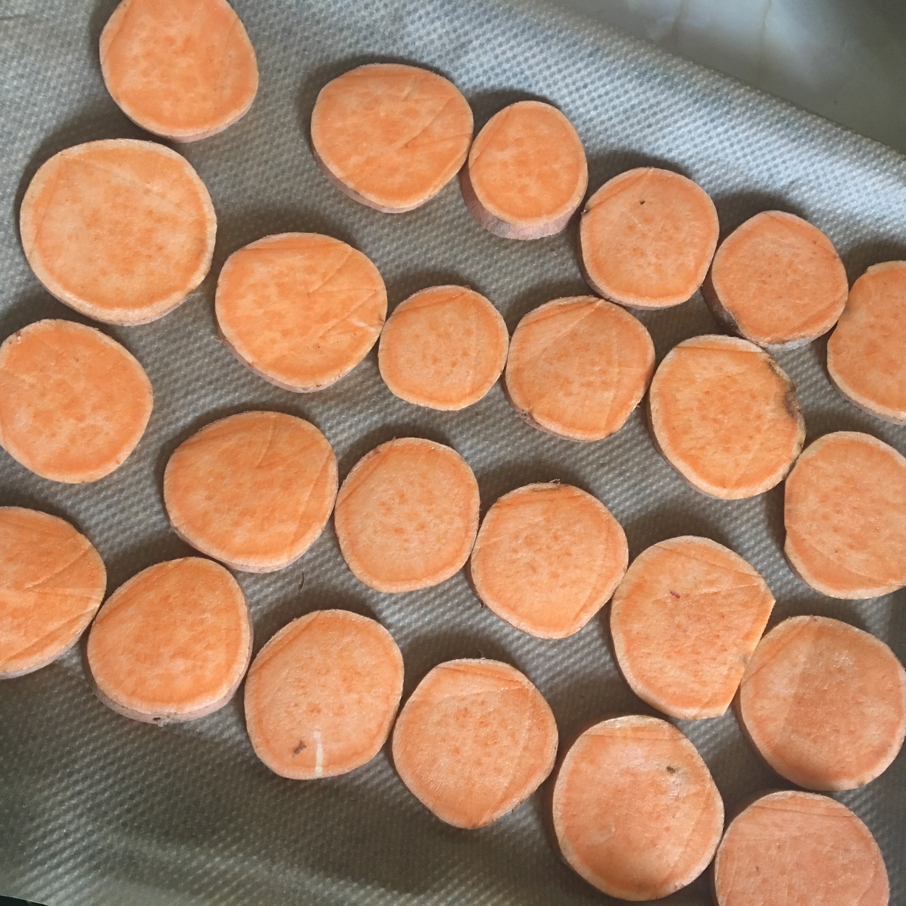 So first of slice the sweet potato. Not too thin not to thick. Here is an example: