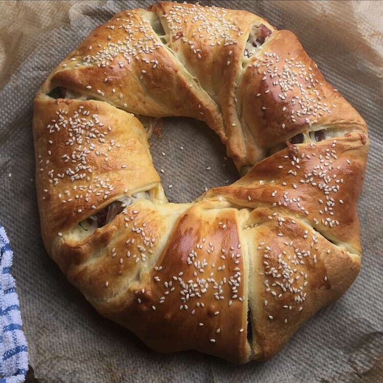 This crown is so delicious and so easy to make. It also looks very impressive to have guests over and serve it with a good salad and a glass of vino.