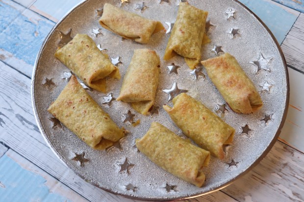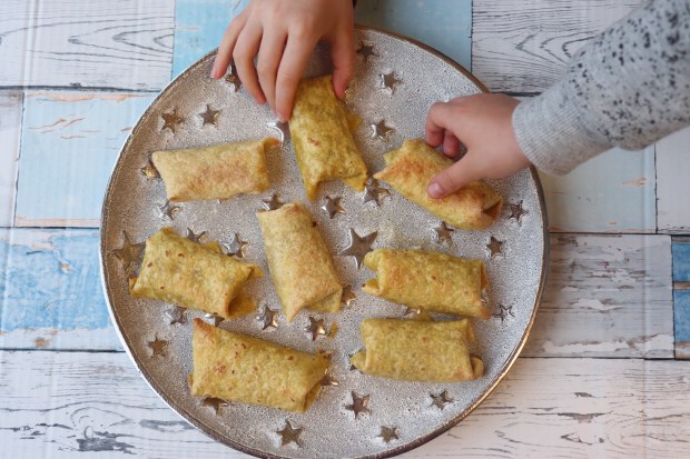 7. Place all the mini burritos into a tray and bake for 12 minutes at 180 degrees Celsius