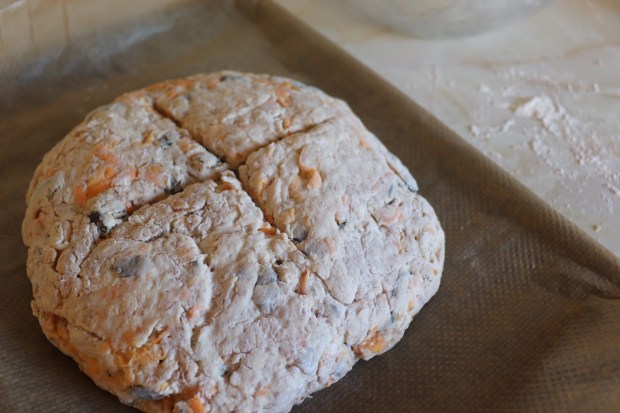 1. In a bowl place the flour, bicarbonate, salt, butternut squash and pumpkin seeds