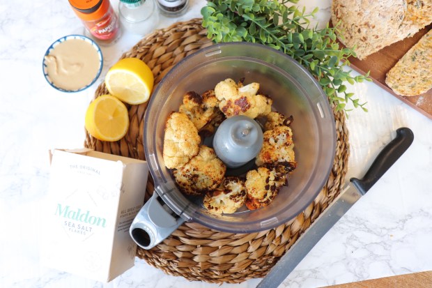 Place the cauliflower on a blender/food processor add juice of one lemon, tahini, 2 tablespoons of olive oil, drop of cold water and blend. (Add as much water as you need to adjust desire consistency)