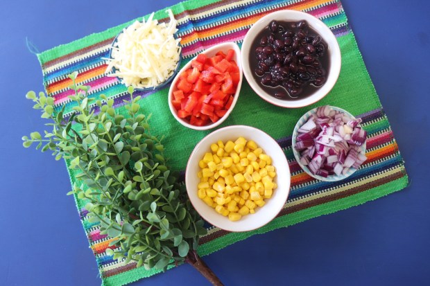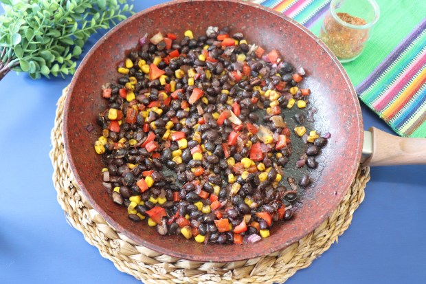 4. In the meantime cook the beans with all the veggies in a frying pan with a little bit of olive oil, add the taco mix spices
